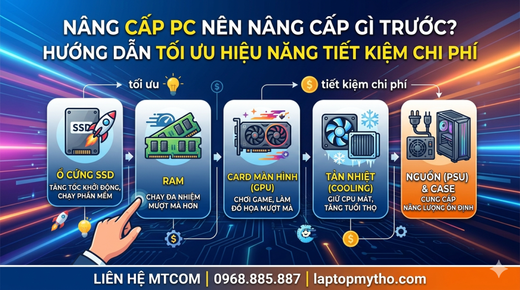 Việc nâng cấp máy tính không cần làm toàn bộ cùng lúc. Chỉ cần nâng đúng linh kiện theo nhu cầu sử dụng, bạn đã có thể cải thiện hiệu năng rõ rệt mà vẫn tiết kiệm ngân sách.